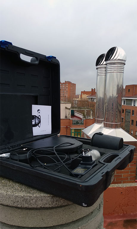 Normalmente se utiliza en chimeneas con problemas de tiro, en shunt de ventilación, campanas extractoras, etc, pudiendo hacer una valoración del estado interior de la chimenea.