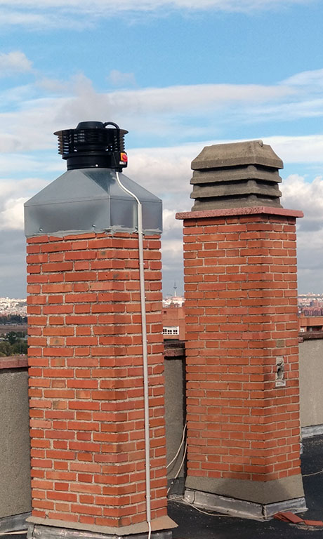 Normalmente se utiliza en chimeneas con problemas de tiro, en shunt de ventilación, campanas extractoras, etc, pudiendo hacer una valoración del estado interior de la chimenea.