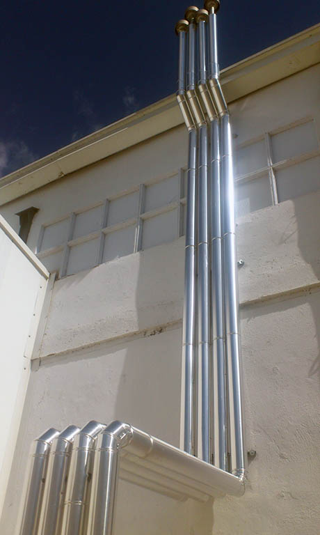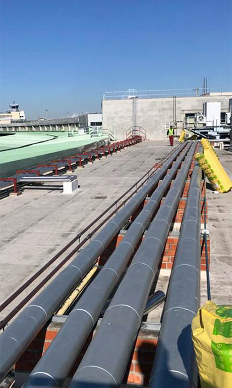 Todas las tuberías, accesorios, equipos y depósitos de las instalaciones térmicas dispondrán de un aislamiento térmico cuando contengan un fluido a temperatura mayor de 40 ºC, cuando estén localizadas en lugares no calefactados como pasillos, aparcamientos, salas de máquinas o cuando discurran por el exterior.