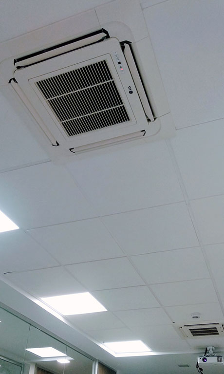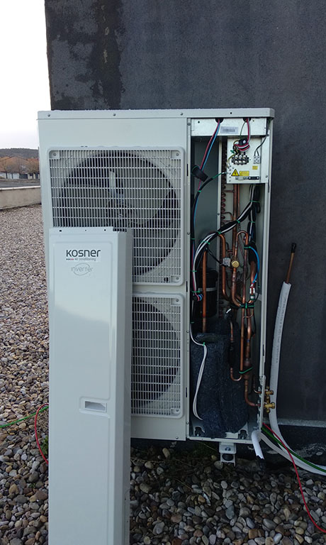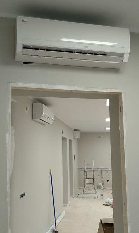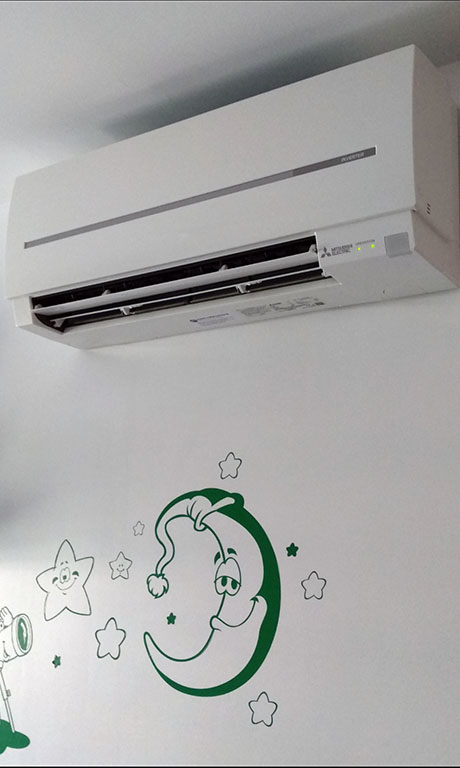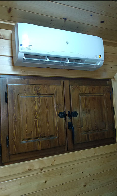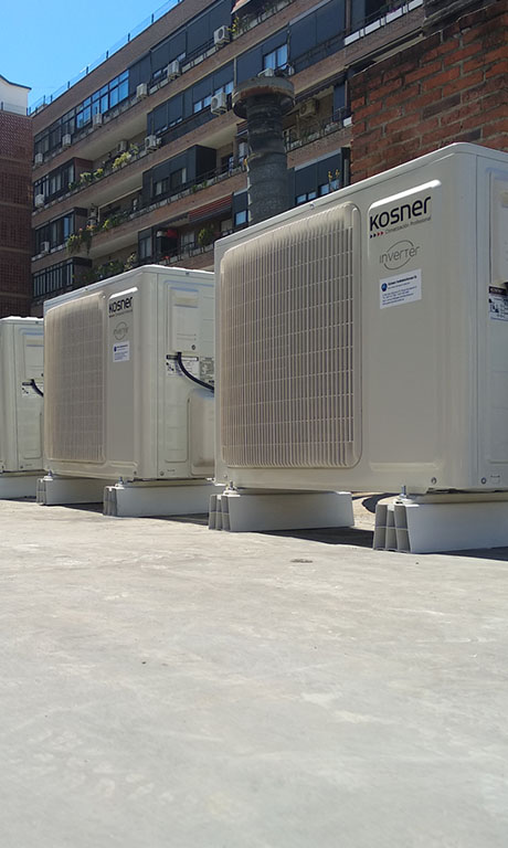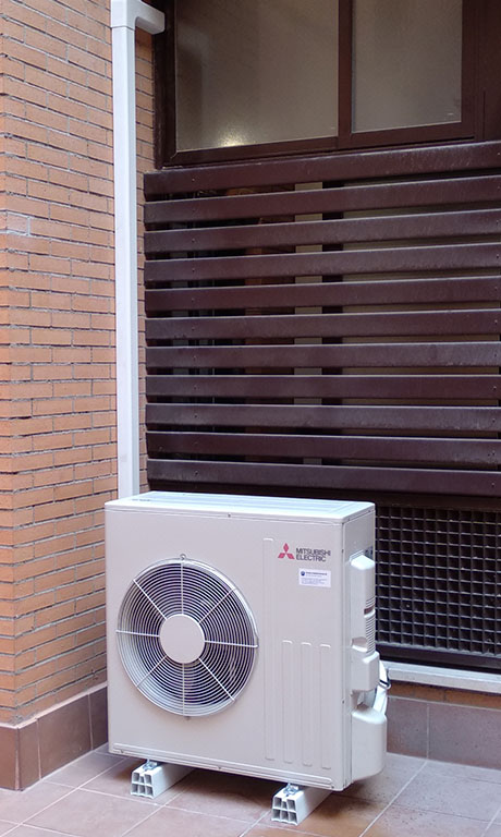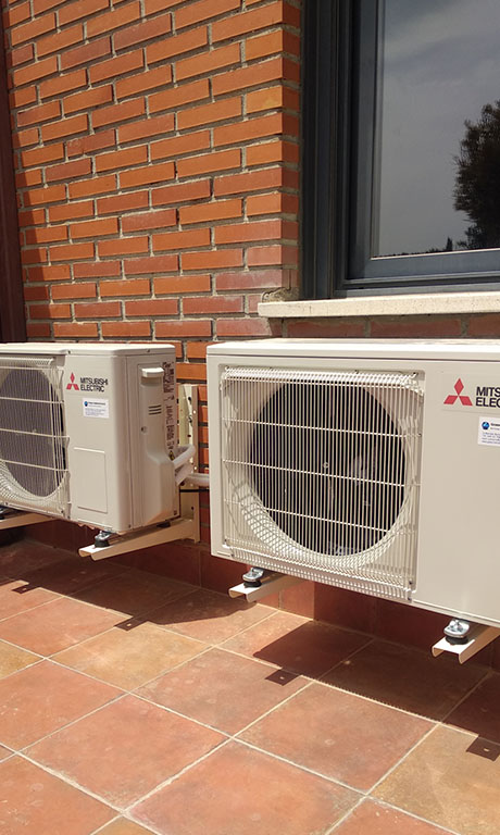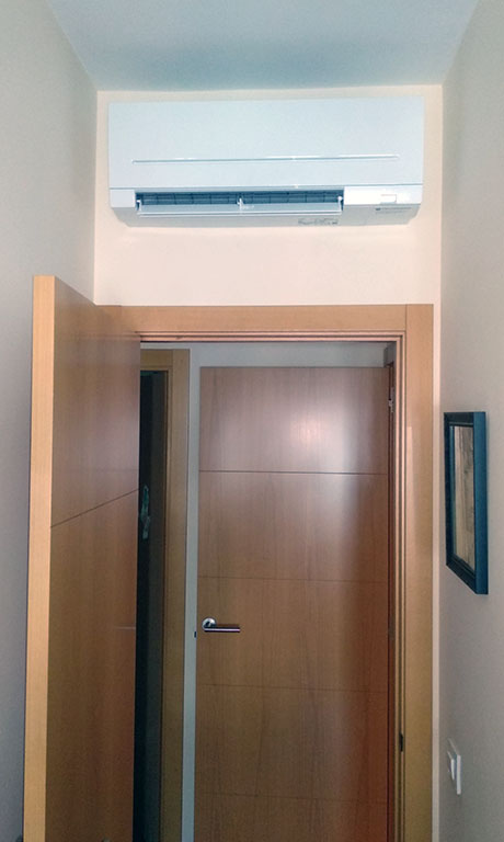 Generalmente se suelen instalar equipos domésticos con distribución de aire por Split de pared tanto 1x1, 2x1 o 3x1. Existiendo la posibilidad de poder instalar equipos de conductos siempre y cuando la altura de la vivienda lo permita.